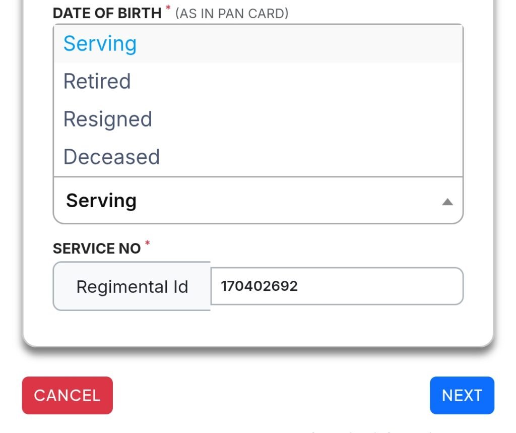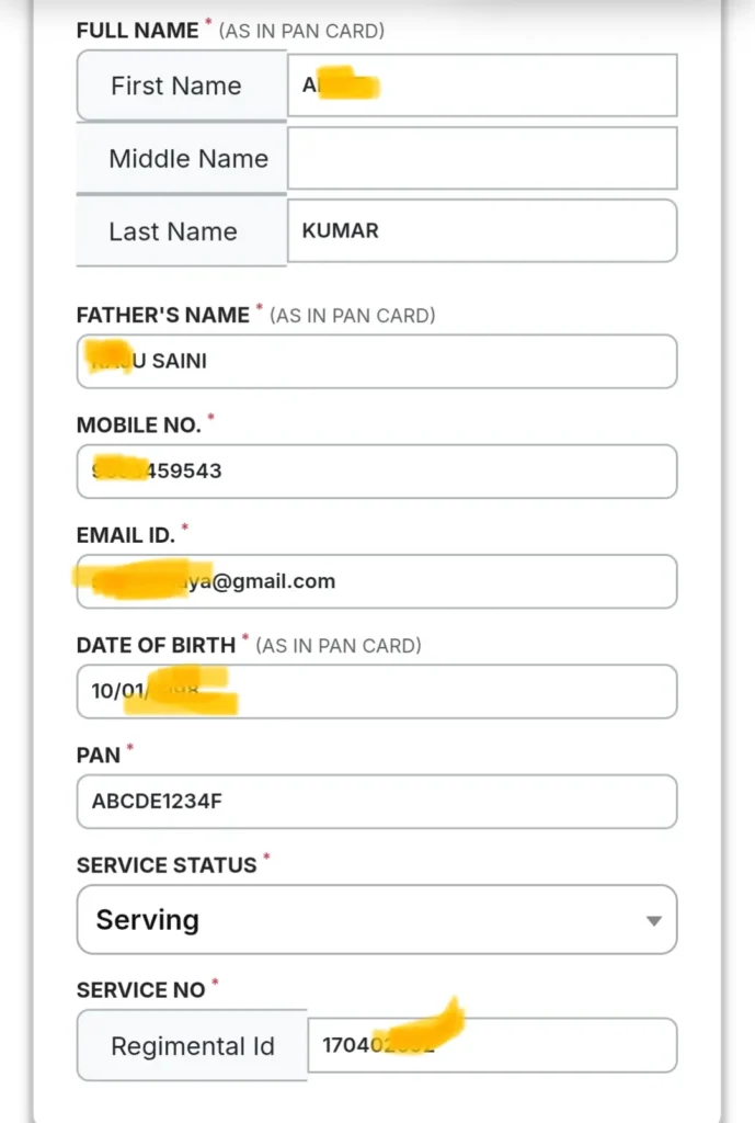 • दस्तावेज: अपना रेजिमेंटल आईडी (Regimental ID), पैन कार्ड, आधार कार्ड और सर्विस स्टेटस (Serving/Retired) की जानकारी पास रखें।